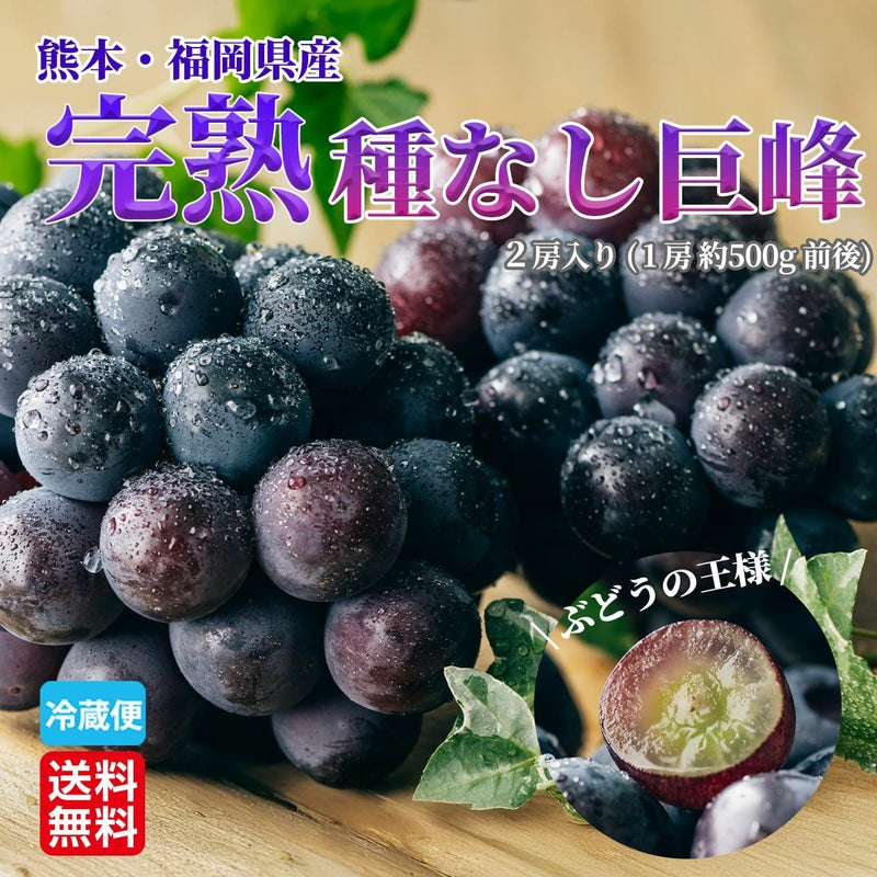 完熟 巨峰 2房(1房:500g前後/種なし) 【送料無料】