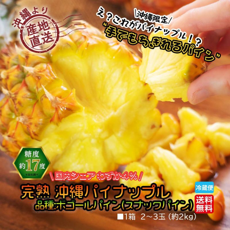 沖縄産直!完熟沖縄パイナップル (スナックパイン) 1箱:2~3玉 約2㎏【送料無料】