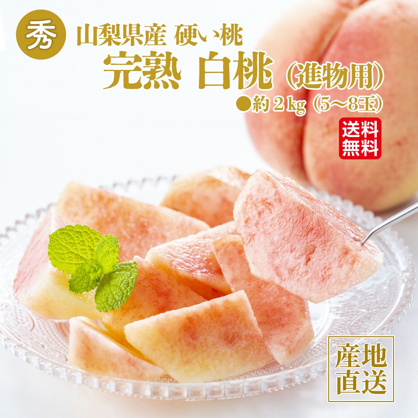 他の画像を見る クール便でお届け 在庫切れ 山梨の農家さんより産地直送! 山梨県産 完熟白桃 (ご自宅用) 約2㎏(5~8玉)【送料無料】 通常価格 ¥ 6,400 のところ ¥ 5,400 税込 お気に入りに登録する