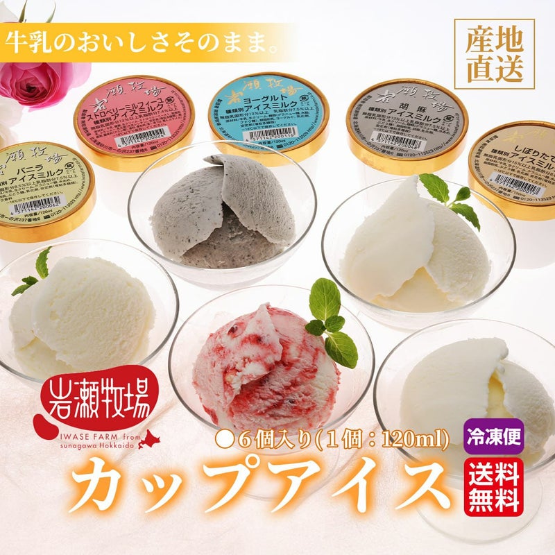 岩瀬牧場 カップアイス 6個入り 【送料無料】≪冷凍便≫