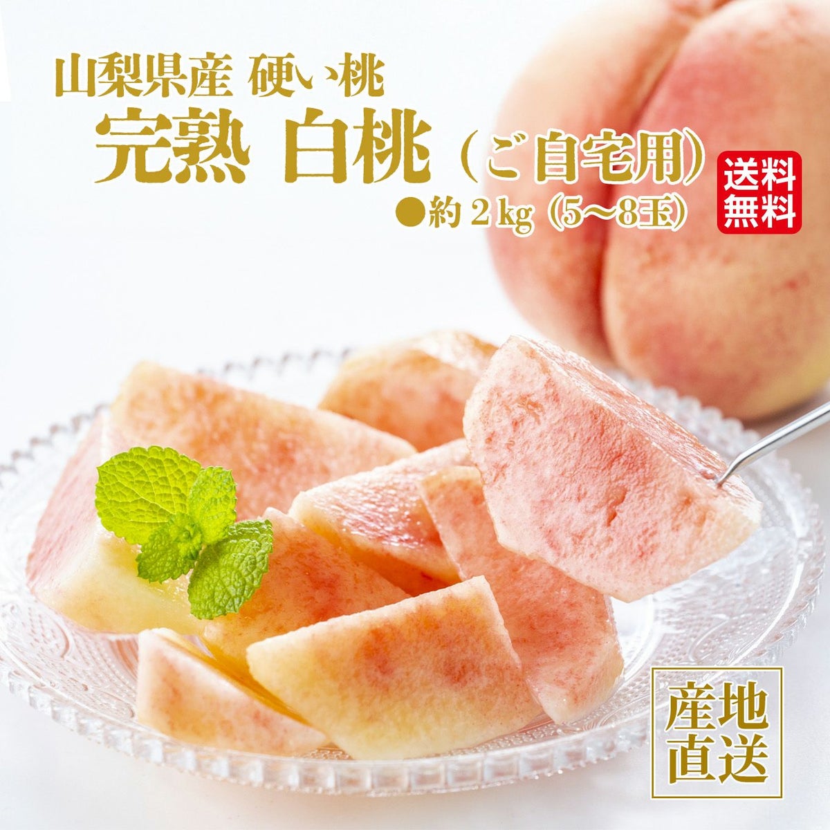 他の画像を見る クール便でお届け 在庫切れ 山梨の農家さんより産地直送! 山梨県産 完熟白桃 (ご自宅用) 約2㎏(5~8玉)【送料無料】 通常価格 ¥ 6,400 のところ ¥ 5,400 税込 お気に入りに登録する